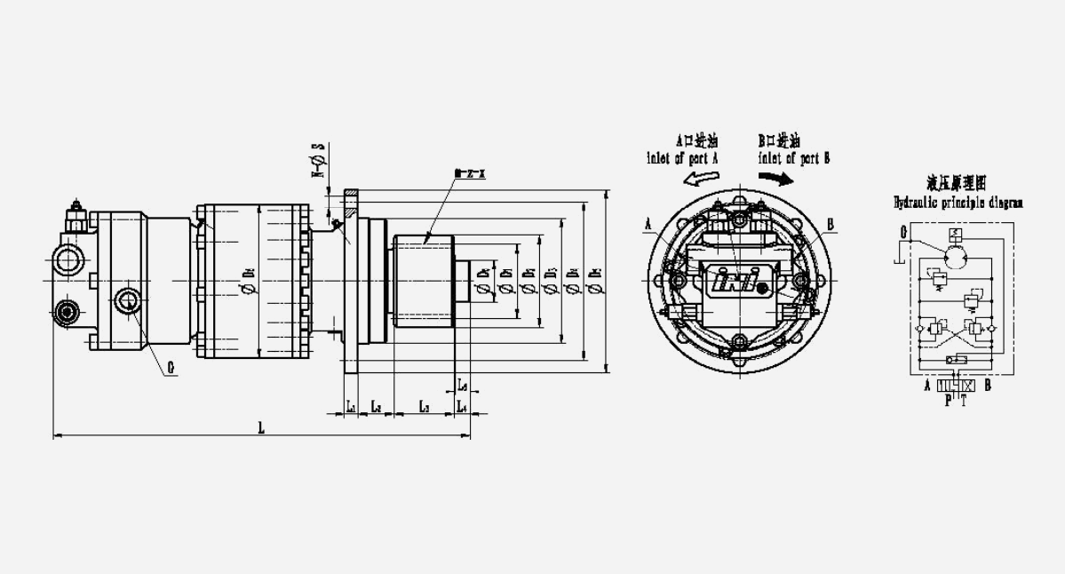 | Seriekod | Nominellt vridmoment | Nominell hastighet | Total förskjutning | Arbetstryck | Tillföra oljeflöde (MPa) | Växellåda modell | Växelparametrar | Övergripande mått och oljeportspecifikationer | ||||||||||||||||||